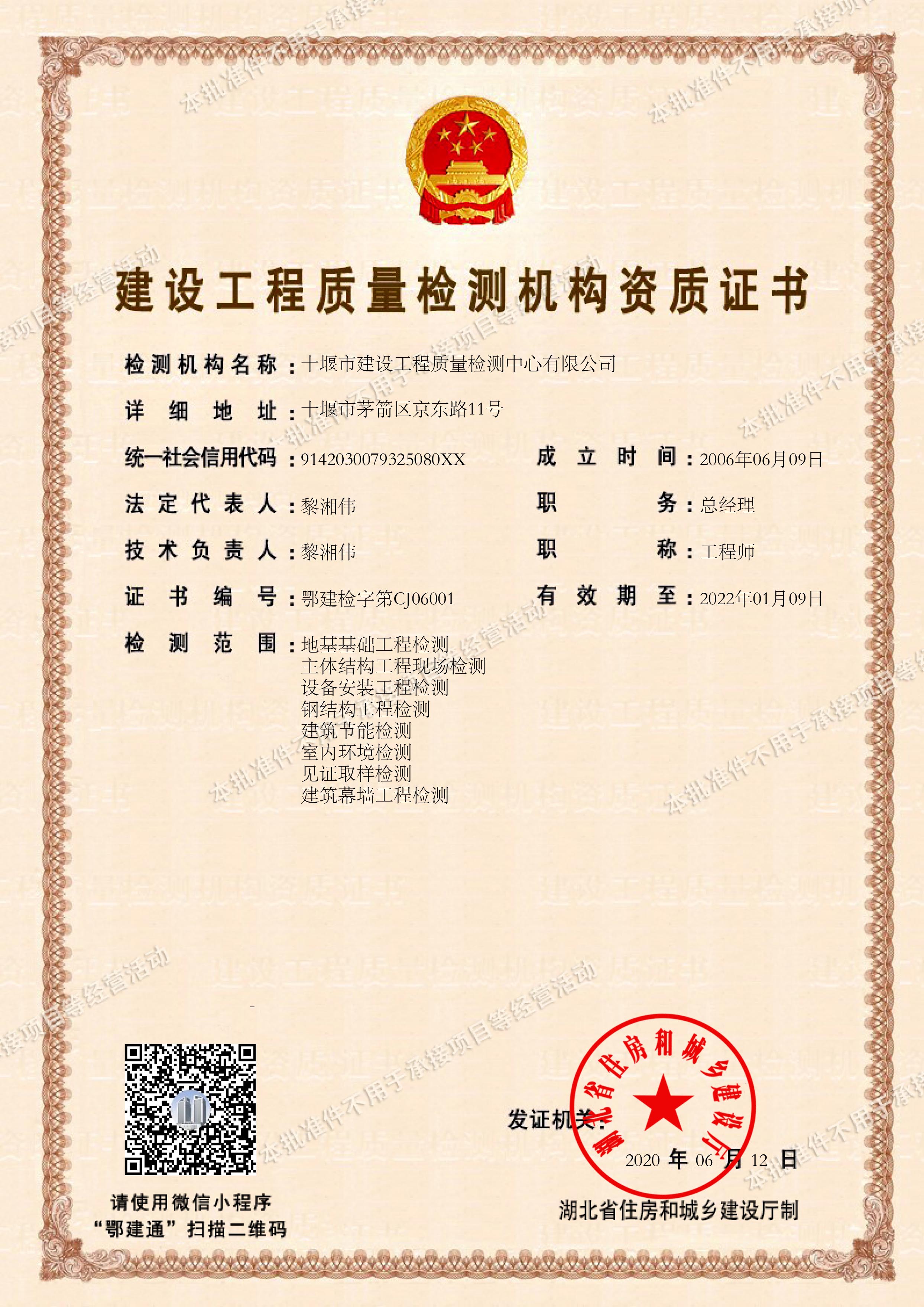 公司前身為十堰市建設工程質量檢測中心(2006年成立),于2017年4月按國家、省、市要求完成改制,企業(yè)類型為有限責任公司,公司法人、執(zhí)行董事為黎湘?zhèn)ァ?br />