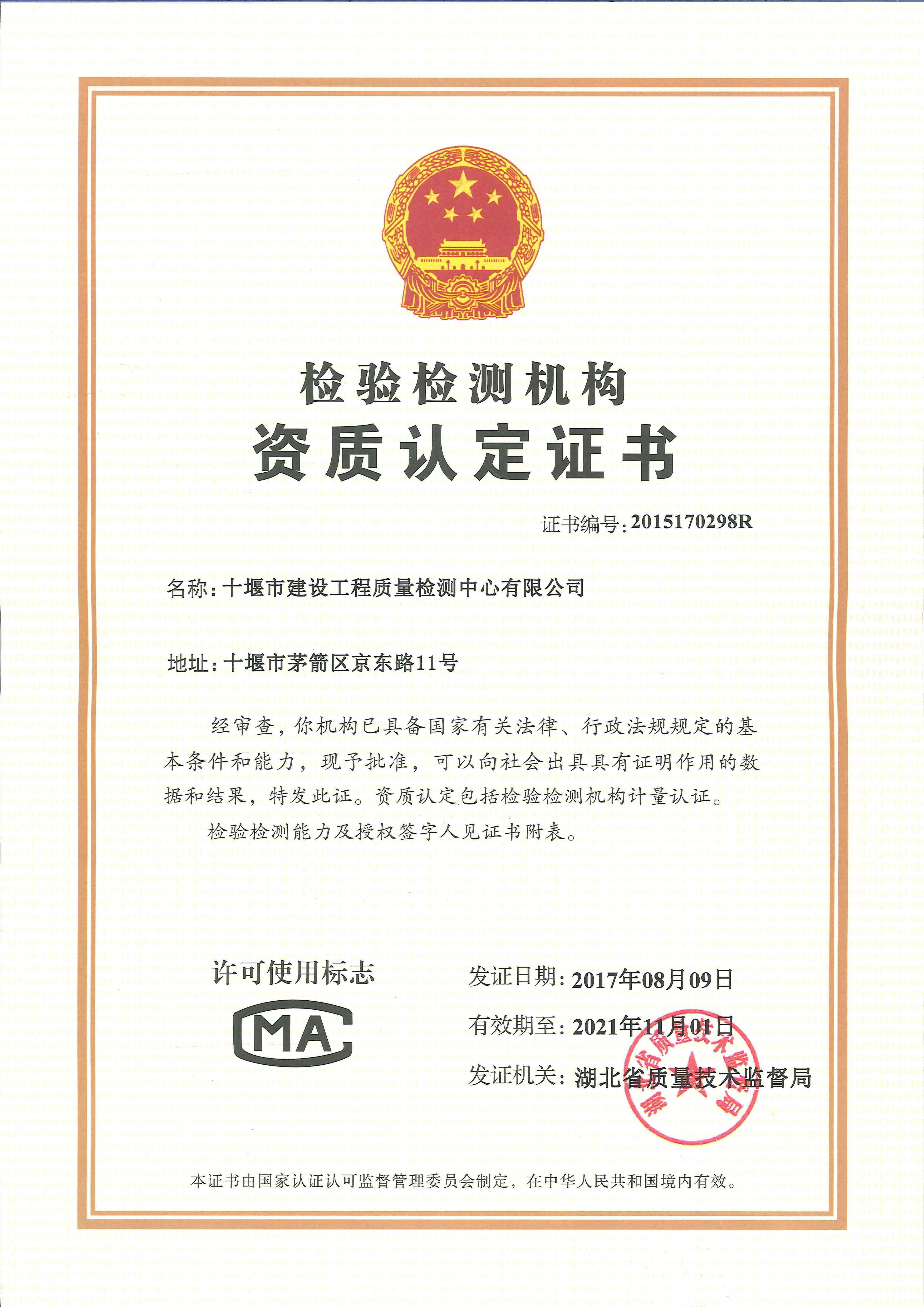 我公司多年來,本著“守法、誠信、公正、科學”的服務宗旨,認真貫徹執(zhí)行《建設工程質量檢測管理辦法》、《湖北省建設工程質量檢測管理實施細則》以及國家相關的法律、法規(guī)、規(guī)程、技術標準,堅持“行為公正、方法科學、數據準確、服務規(guī)范”質量方針的同時不斷貫徹將“真實、可靠、規(guī)范、及時”精神,2019年2月,在全省檢測機構AAA級信用評價中獲得AAA級檢測機構榮譽稱號(十堰唯一);2019年6月參加湖北省市場監(jiān)督管理局組織的鋼筋力學性能檢測能力驗證工作,結果為滿意;2019年6月參加湖北省質安協(xié)會組織的“混凝土立方體抗壓強度測試能力驗證”工作,結果為滿意;2020年7月參加“2020年湖北省建設工程質量檢測機構水泥物理性能檢測能力驗證”比賽,結果為滿意。