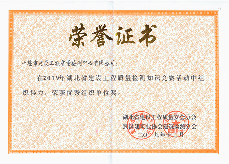 2019.12湖北省工程質(zhì)量檢測知識競賽活動獲優(yōu)秀組